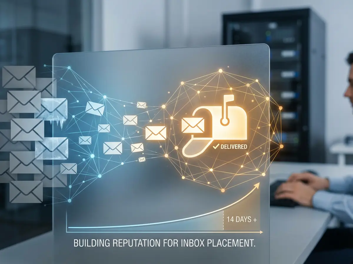 Email warmup means starting with very low‑volume sending and slowly increasing the number of emails over several weeks, while simulating natural engagement (opens, replies, marking as important, moving out of spam).